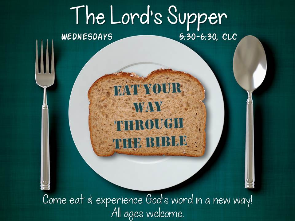 It is our hope that at the Lord’s Supper each Wednesday, we model the fellowship of the early church, breaking bread in remembrance of Christ in unity, building one another up, strengthening our foundation in Christ, and making disciples. Come and learn, or re-learn, the deep stories of the Bible and find afresh the true heart of God.  Meals are FREE.  The Lord’s Supper meal program breaks for summer and meets weekly September – early December and January – early May.